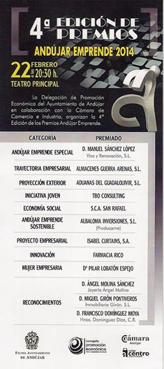 GALARDONADOS PREMIOS ANDUJAR EMPRENDE 2014 Publicado el febrero 24, 2014 a 235 × 528 en GALARDONADOS PREMIOS ANDUJAR EMPRENDE 2014